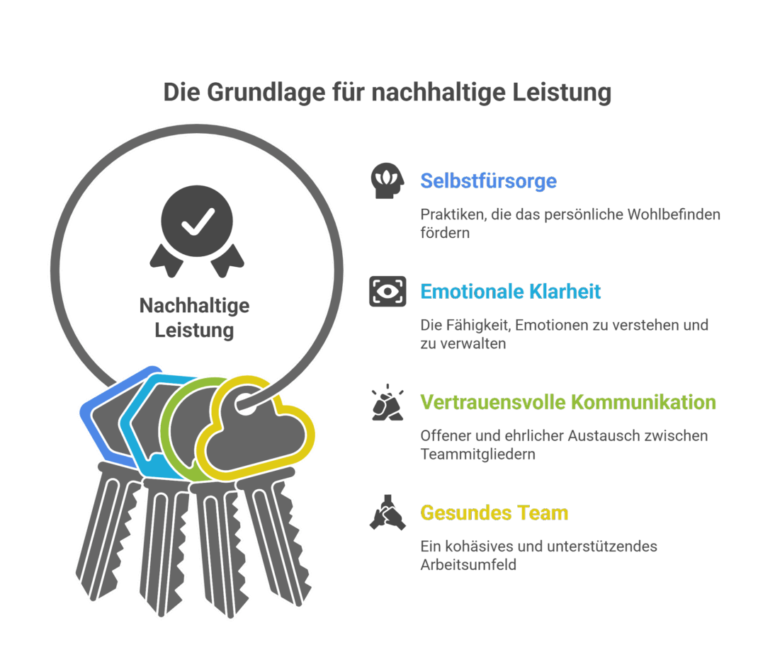 Selbstfürsorge → emotionale Klarheit → vertrauensvolle Kommunikation → gesundes Team → nachhaltige Performance